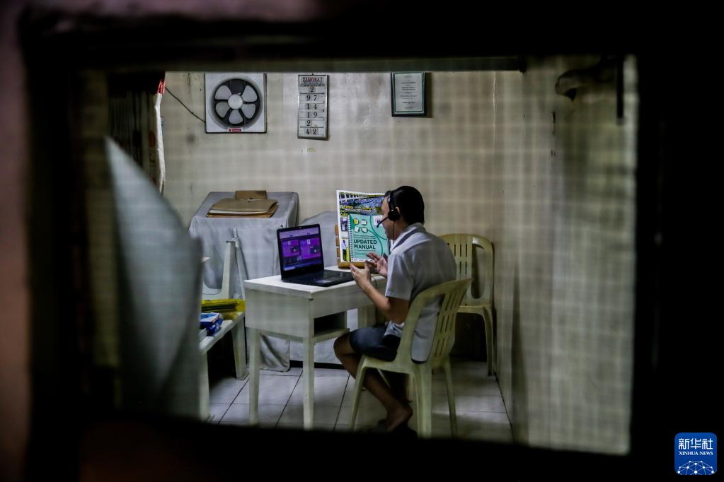 9月13日,在菲律賓馬尼拉,教師卡爾文·埃羅爾·阿爾坎塔拉在2021-2022學(xué)年開(kāi)學(xué)第一天通過(guò)網(wǎng)絡(luò )為學(xué)生上課。當日,菲律賓教育部門(mén)通過(guò)網(wǎng)絡(luò )、電視和電臺等形式開(kāi)啟了新學(xué)年的教學(xué)。