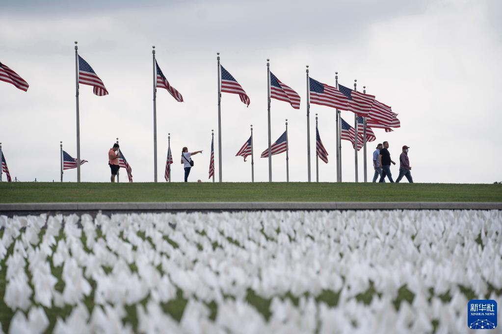 當日起至10月初,超過(guò)66萬(wàn)面白色旗幟擺放在華盛頓紀念碑附近悼念美國超過(guò)66萬(wàn)名新冠逝者。