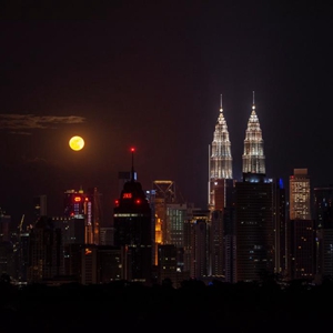 9月21日,中秋圓月映襯著(zhù)馬來(lái)西亞吉隆坡城市夜景。新華社發(fā)(張紋綜攝)