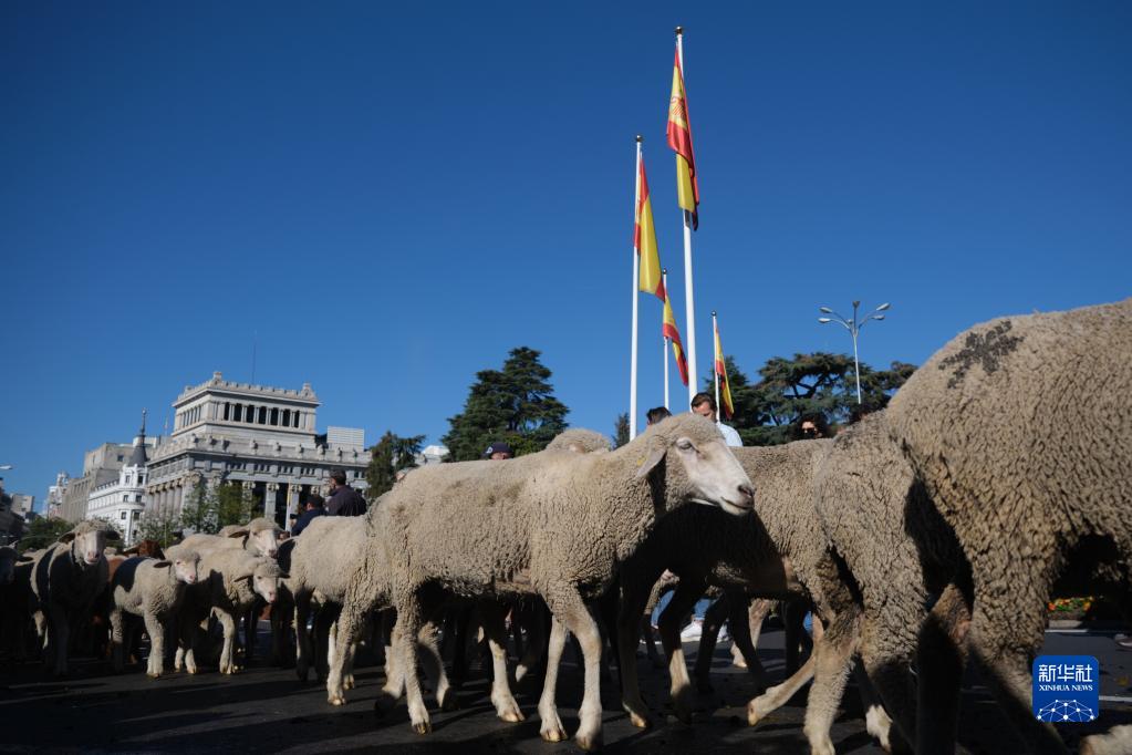 10月24日,羊群走過(guò)西班牙馬德里市中心。
