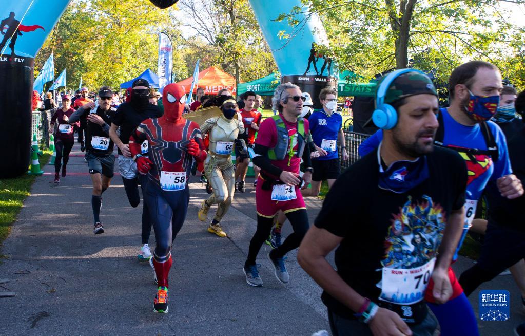 10月24日,穿著(zhù)動(dòng)漫服裝的人們在加拿大多倫多參加“變裝”5公里長(cháng)跑。