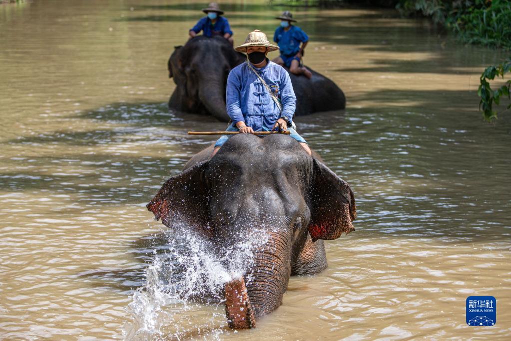 10月27日,大象在泰國南邦府的大象保護中心洗澡。
