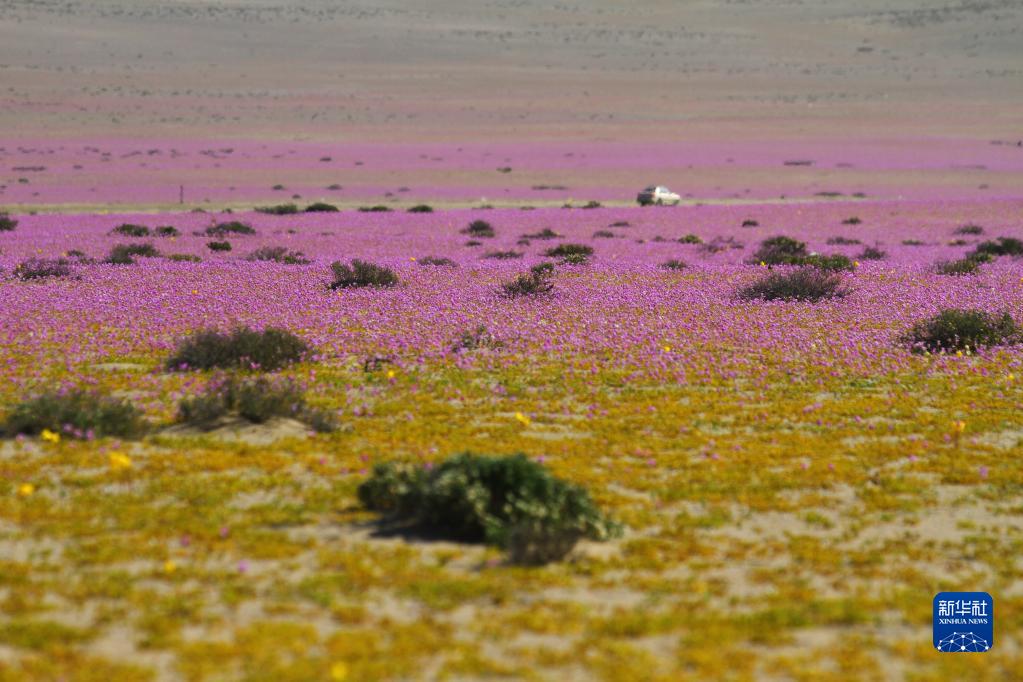在冬季降水量較多的年份,開(kāi)春之后,阿塔卡馬沙漠最南部靠近海岸的地方會(huì )有很多沙漠植物發(fā)芽、開(kāi)花。由于今年6月至8月阿塔卡馬沙漠南緣經(jīng)歷了幾場(chǎng)降水,春季到來(lái)時(shí),這里便綻放出大片的花毯?!伴_(kāi)花的沙漠”這一現象作為智利北部春季偶有出現的美景,吸引了各地的旅游者,也為當地科學(xué)家研究耐旱植物特性、利用基因技術(shù)發(fā)展耐旱作物提供了“天然實(shí)驗室”。