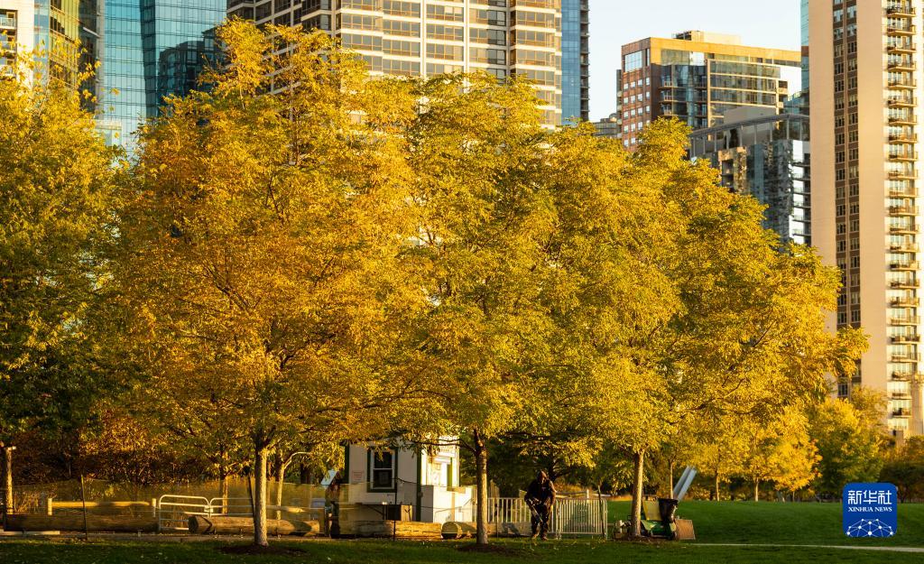 11月2日,一名市政工人在美國芝加哥清掃落葉。