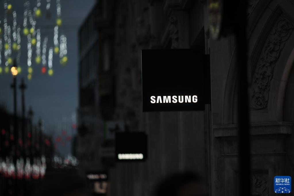 這是11月13日在英國倫敦拍攝的三星品牌標識。