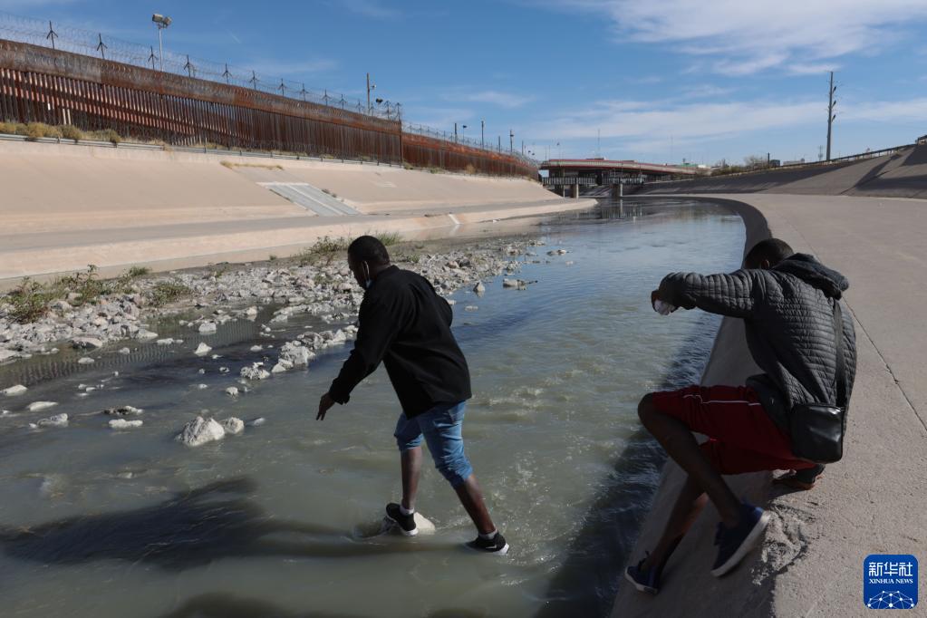 12月7日在墨西哥華雷斯城拍攝的照片顯示,移民試圖通過(guò)美墨邊境的布拉沃河進(jìn)入美國。
