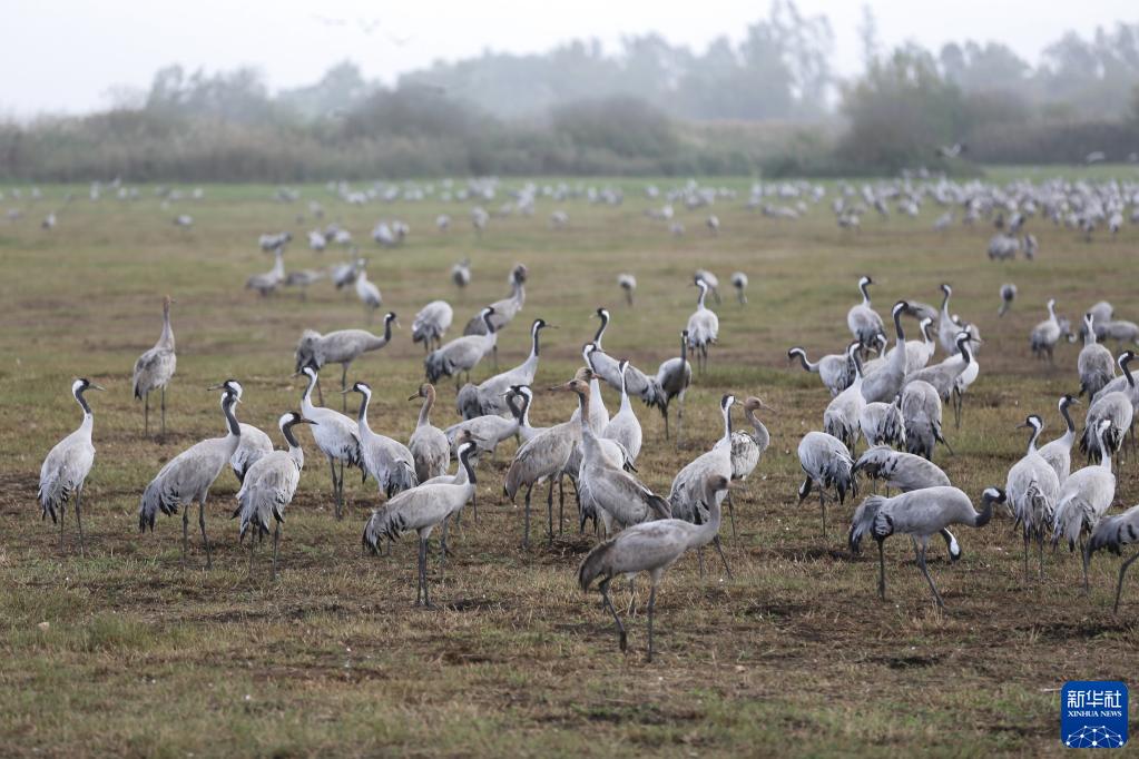 12月9日,一群灰鶴在以色列阿格蒙胡拉鳥(niǎo)類(lèi)和自然公園的濕地里休息。