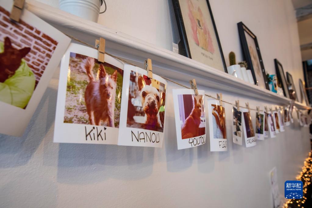 12月22日,在法國北部城市里爾名為Waf Cafe的咖啡館,墻上掛著(zhù)后來(lái)被收養的狗狗照片。