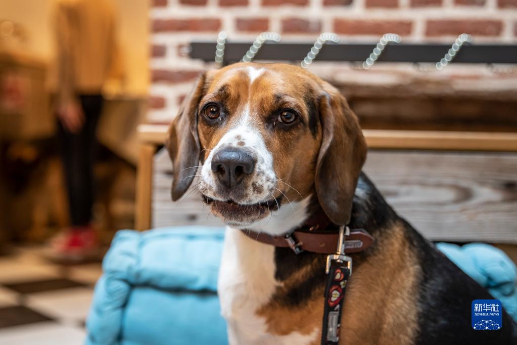 這是12月22日在法國北部城市里爾名為Waf Cafe的咖啡館拍攝的一只狗狗。
