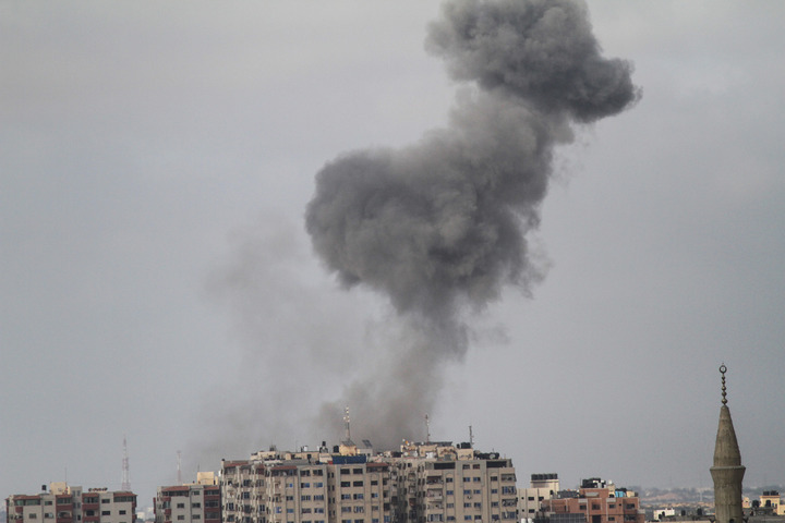 5月20日,遭空襲的加沙城升起濃煙。連日來(lái),巴勒斯坦加沙地帶武裝組織與以色列的嚴重沖突持續升級,造成包括婦女和兒童在內的大量人員傷亡,引發(fā)國際社會(huì )嚴重關(guān)切。新華社發(fā)(里澤克·阿卜杜勒·賈瓦德攝)