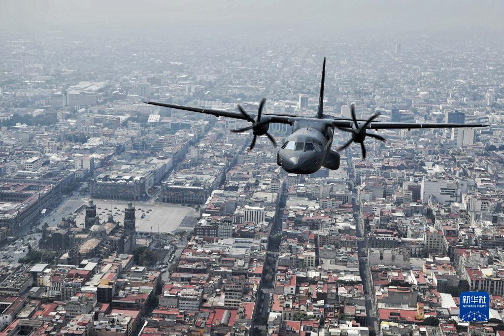 2021年9月16日,參加閱兵式的空軍飛機飛過(guò)墨西哥首都墨西哥城憲法廣場(chǎng)的上空。當天,墨西哥在首都墨西哥城舉行閱兵式慶祝獨立日。