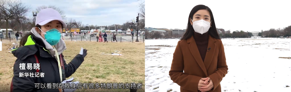 (視頻截屏拼圖:左為2021年1月在白宮外,右為2022年1月在白宮外)