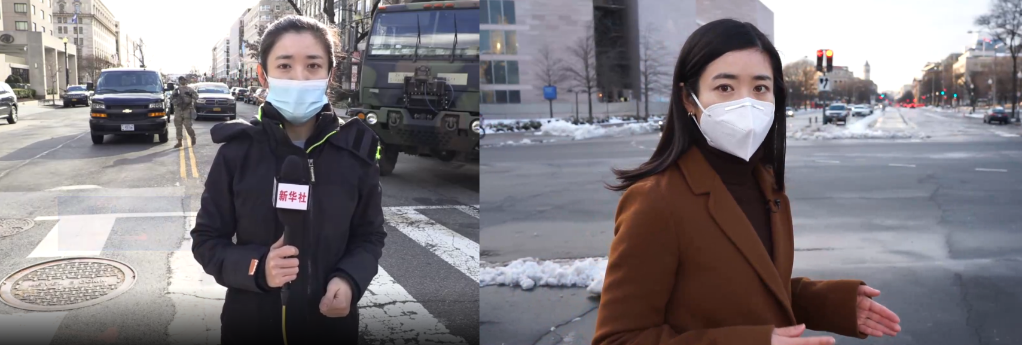 當時(shí),新華社記者不得不騎車(chē)進(jìn)入華盛頓,再步行通過(guò)封鎖地區,趕赴新聞現場(chǎng),用鏡頭直擊國會(huì )山腳下的混亂、示威者的喧囂,記錄大廈內被掀翻的桌椅和碎了一地的玻璃碴。在那之后,記者更是第一次看到如驚弓之鳥(niǎo)的華盛頓,實(shí)施緊急狀態(tài),街面空空蕩蕩,只有重兵把守,儼然一個(gè)戒備森嚴的軍事基地。