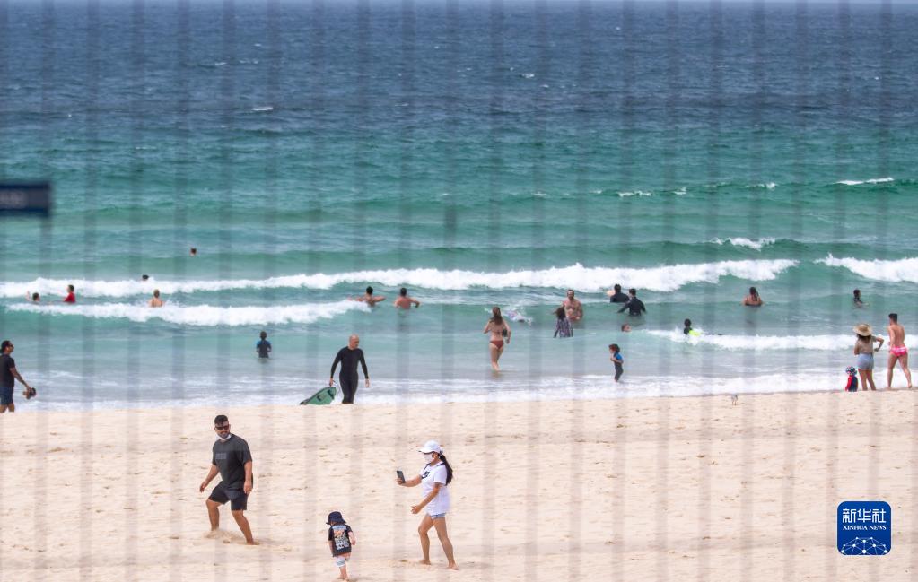 1月9日,在澳大利亞悉尼邦迪海灘,人們在海濱休憩。