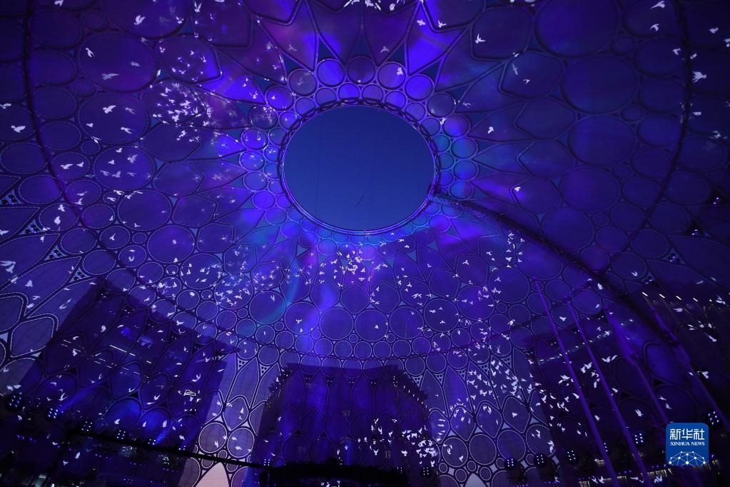 這是1月9日在阿拉伯聯(lián)合酋長(cháng)國迪拜世博園穹頂廣場(chǎng)拍攝的穹頂。