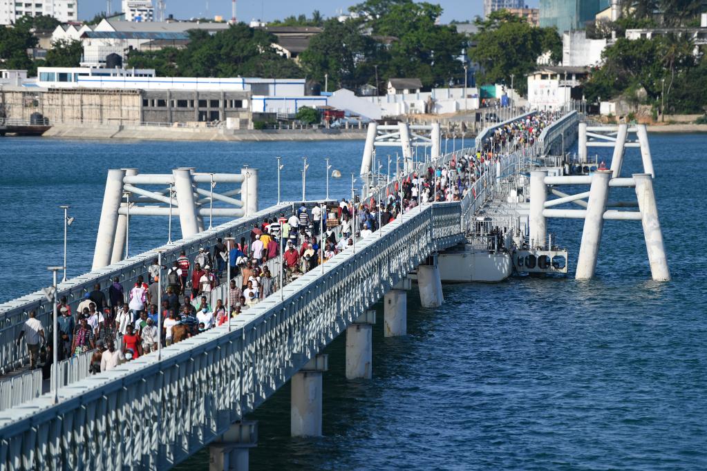 因此,肯尼亞政府決定建造一座跨海浮橋。2020年9月,利科尼浮橋項目正式啟動(dòng),并于當年12月10日完工。如今,全長(cháng)近2千米的浮橋日均通行人流量達30萬(wàn)人次。浮橋還設有186米可開(kāi)啟段,以保證進(jìn)出港口的船舶通行。目前,輪渡主要用于運輸跨海車(chē)輛。