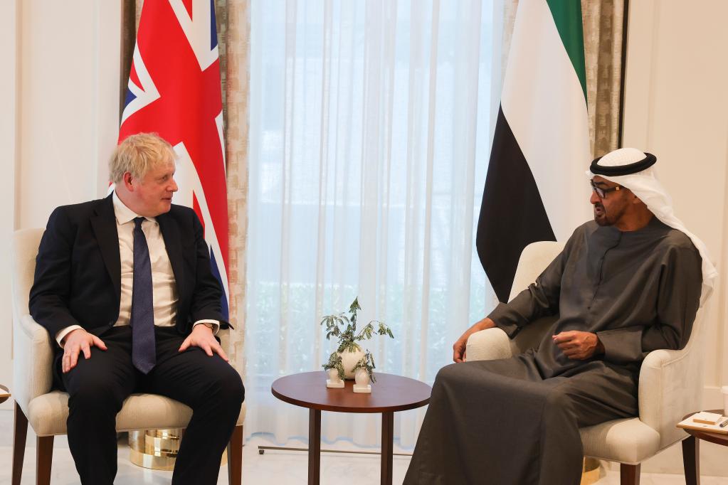 2022年3月16日,在阿聯(lián)酋首都阿布扎比,阿聯(lián)酋阿布扎比王儲穆罕默德·本·扎耶德·阿勒納哈揚(右)與英國首相鮑里斯·約翰遜舉行會(huì )晤。新華社發(fā)(英國首相府供圖)