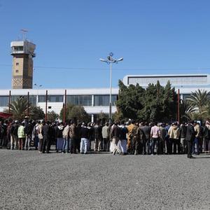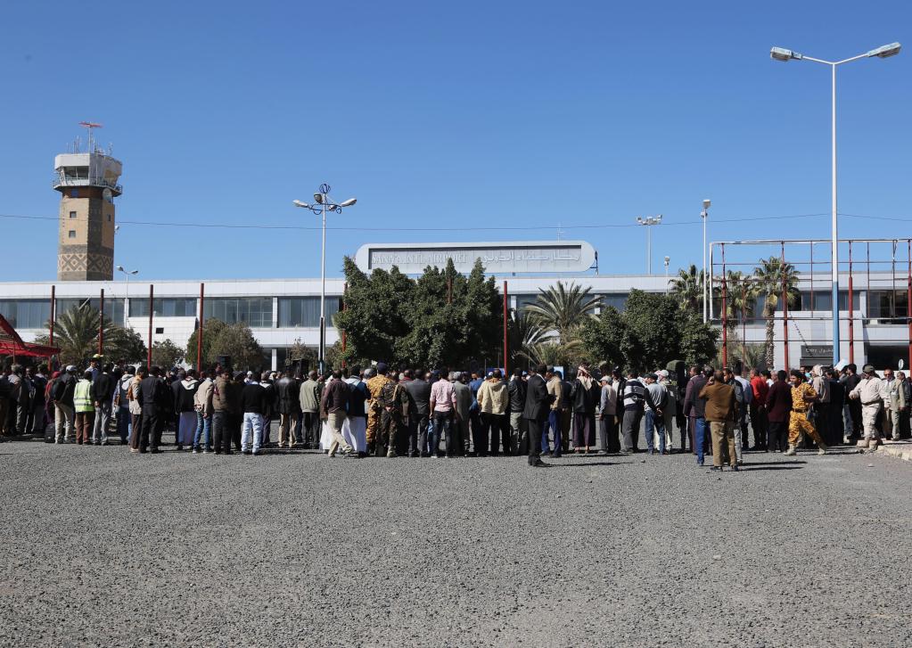 2021年12月7日,民眾在也門(mén)薩那國際機場(chǎng)集會(huì ),抗議對薩那國際機場(chǎng)的封鎖。薩那國際機場(chǎng)因戰事已被封鎖多年。新華社發(fā)(穆罕默德攝)