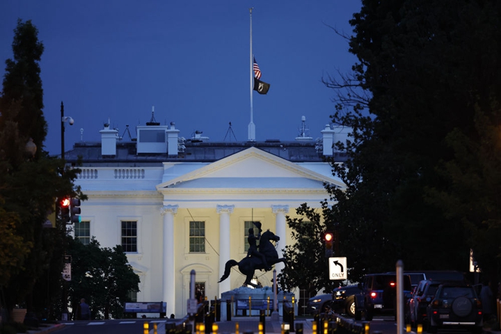 5月24日,在美國首都華盛頓,白宮降半旗向得克薩斯州槍擊事件遇害者致哀。新華社發(fā)(沈霆攝)