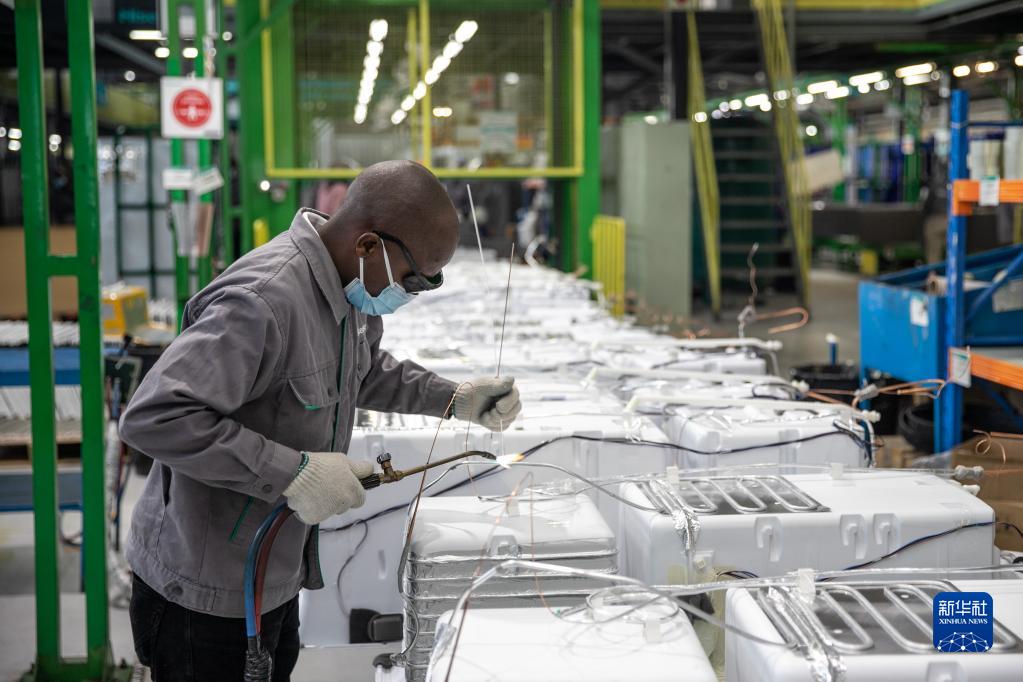 2022年6月1日,當地員工在南非開(kāi)普敦海信南非工業(yè)園的冰箱生產(chǎn)線(xiàn)上工作。 新華社記者 呂天然 攝