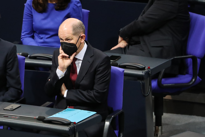2021年12月8日,在德國首都柏林的國會(huì )大廈,朔爾茨出席會(huì )議。新華社記者單宇琦攝