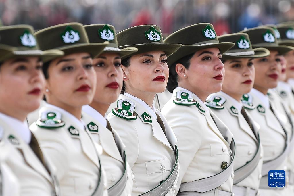 當日,一年一度的智利陸軍節閱兵式在首都圣地亞哥奧伊金斯公園舉行。智利陸??杖姾途觳筷?200多人參加了閱兵式。