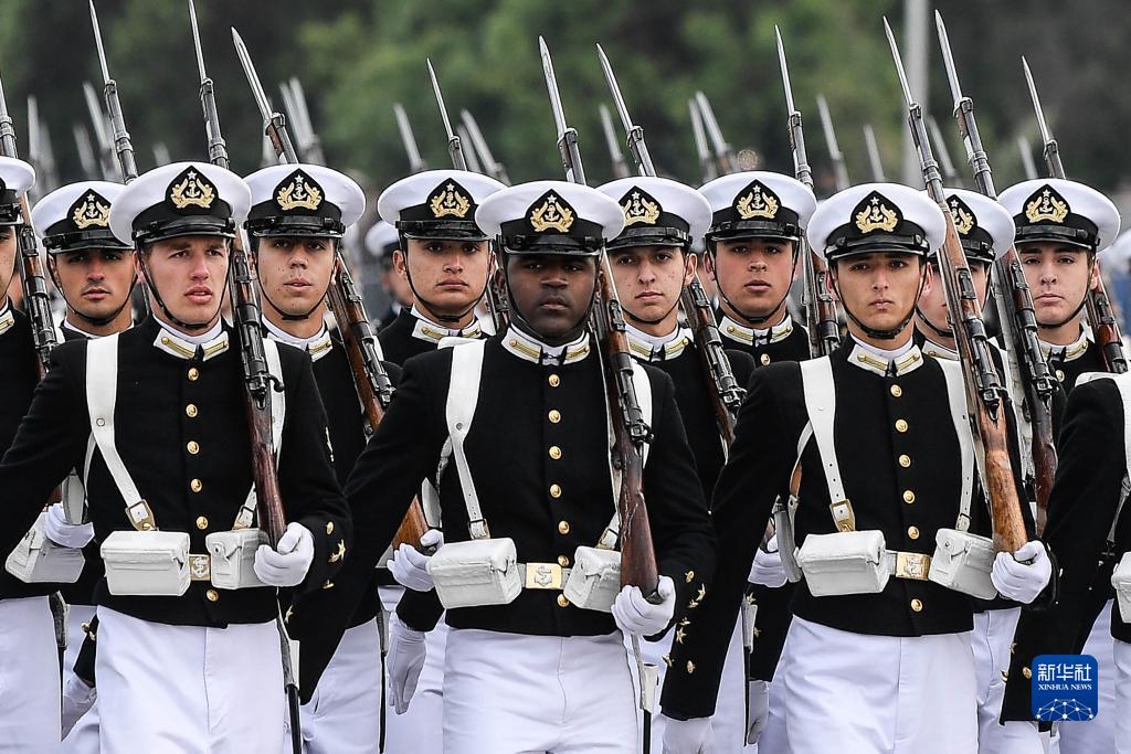 9月19日,在智利首都圣地亞哥,海軍士兵在閱兵式上列隊行進(jìn)。