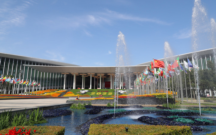 國家會(huì )展中心(上海)南廣場(chǎng)。新華社記者方喆攝于2022年10月24日