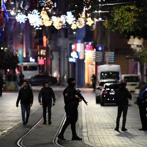 11月13日,警察在土耳其伊斯坦布爾市中心塔克西姆廣場(chǎng)警戒。