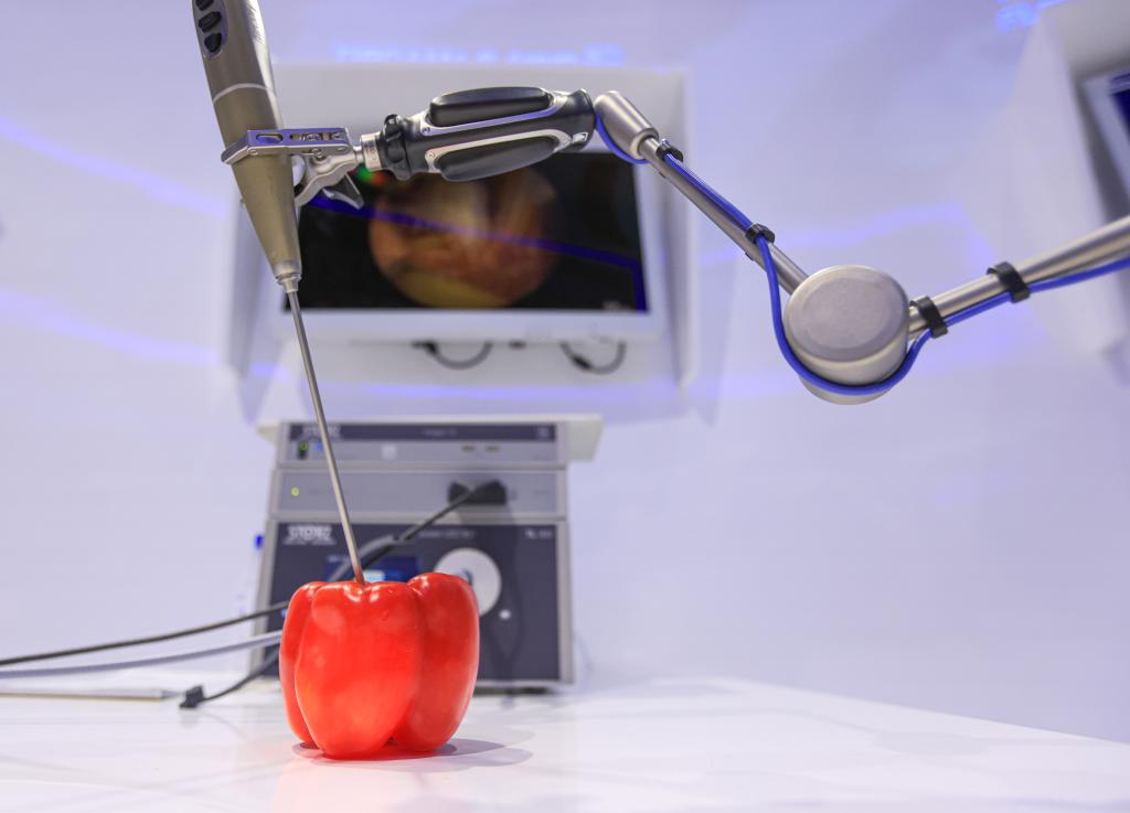 11月7日在第五屆進(jìn)博會(huì )德國卡爾史托斯展臺拍攝的電子內窺鏡。新華社記者李京攝