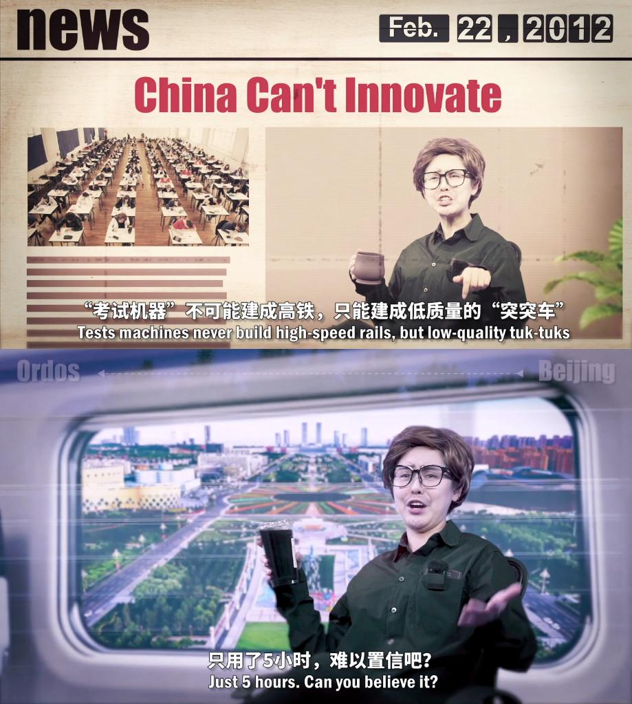 劇中,某外媒駐華首席記者鮑勃搭乘高鐵去了內蒙古自治區鄂爾多斯市,感嘆中國高鐵速度之快、票價(jià)之惠、沿途風(fēng)景之美。而十年前的他還聲稱(chēng),中國高鐵是“低質(zhì)量的突突車(chē)”和“破銅爛鐵”……