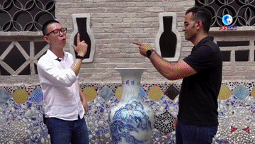 在埃及青年阿里的眼中,青花瓷是中阿文明共同創(chuàng )造的全球暢銷(xiāo)產(chǎn)品。于是在景德鎮,他向中國同事卜多門(mén)(阿拉伯語(yǔ)名字:阿布多瑪)發(fā)起挑戰,看誰(shuí)能從古老文明中汲取靈感,制造出富有魅力的青花瓷。