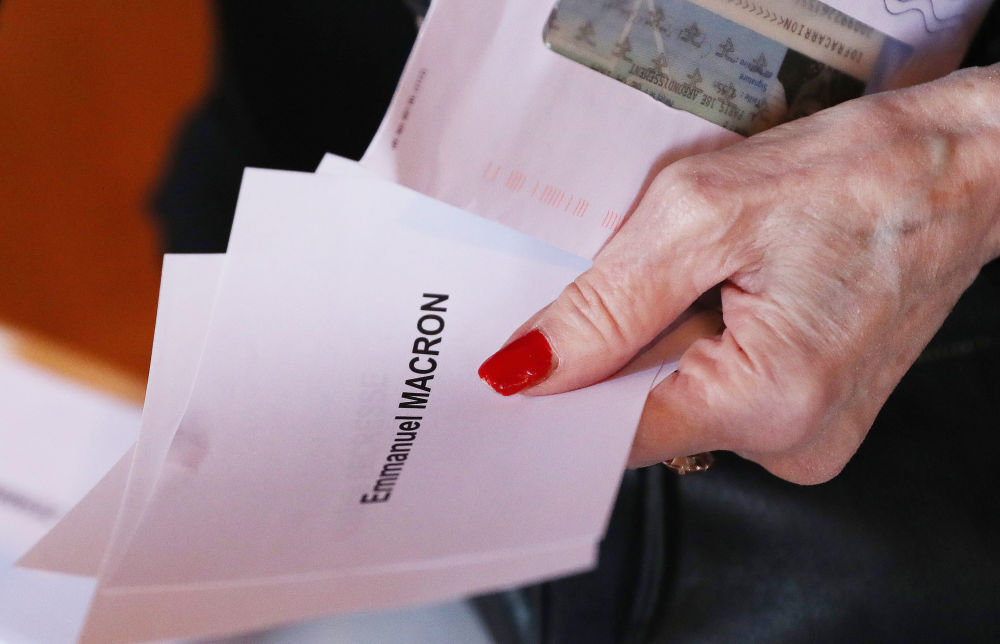 ↑2022年4月10日,選民來(lái)到法國巴黎附近的克里希市一家投票站投票。法國總統選舉首輪投票4月10日在法國本土開(kāi)始進(jìn)行。
