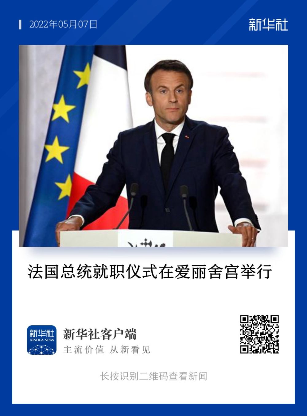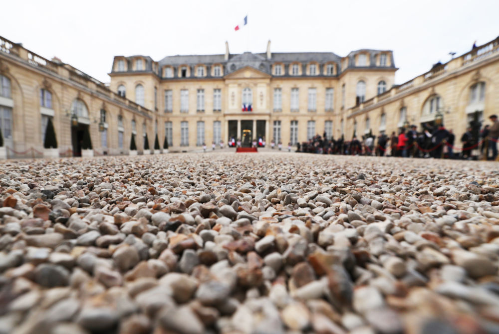 ↑2022年5月7日在法國巴黎愛(ài)麗舍宮拍攝的總統就職典禮現場(chǎng)。