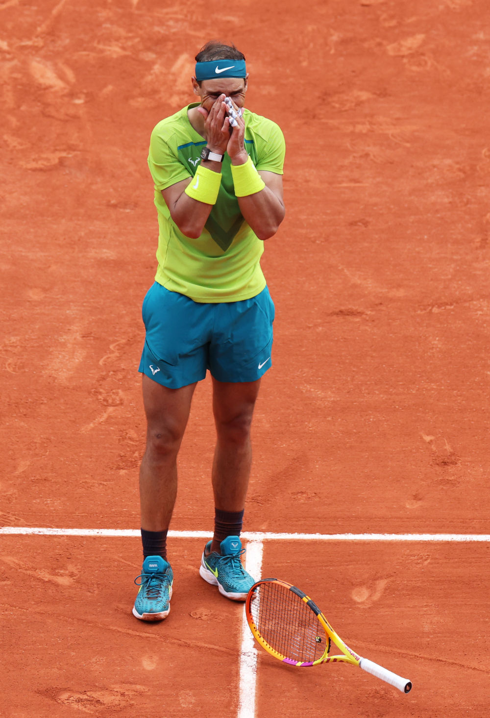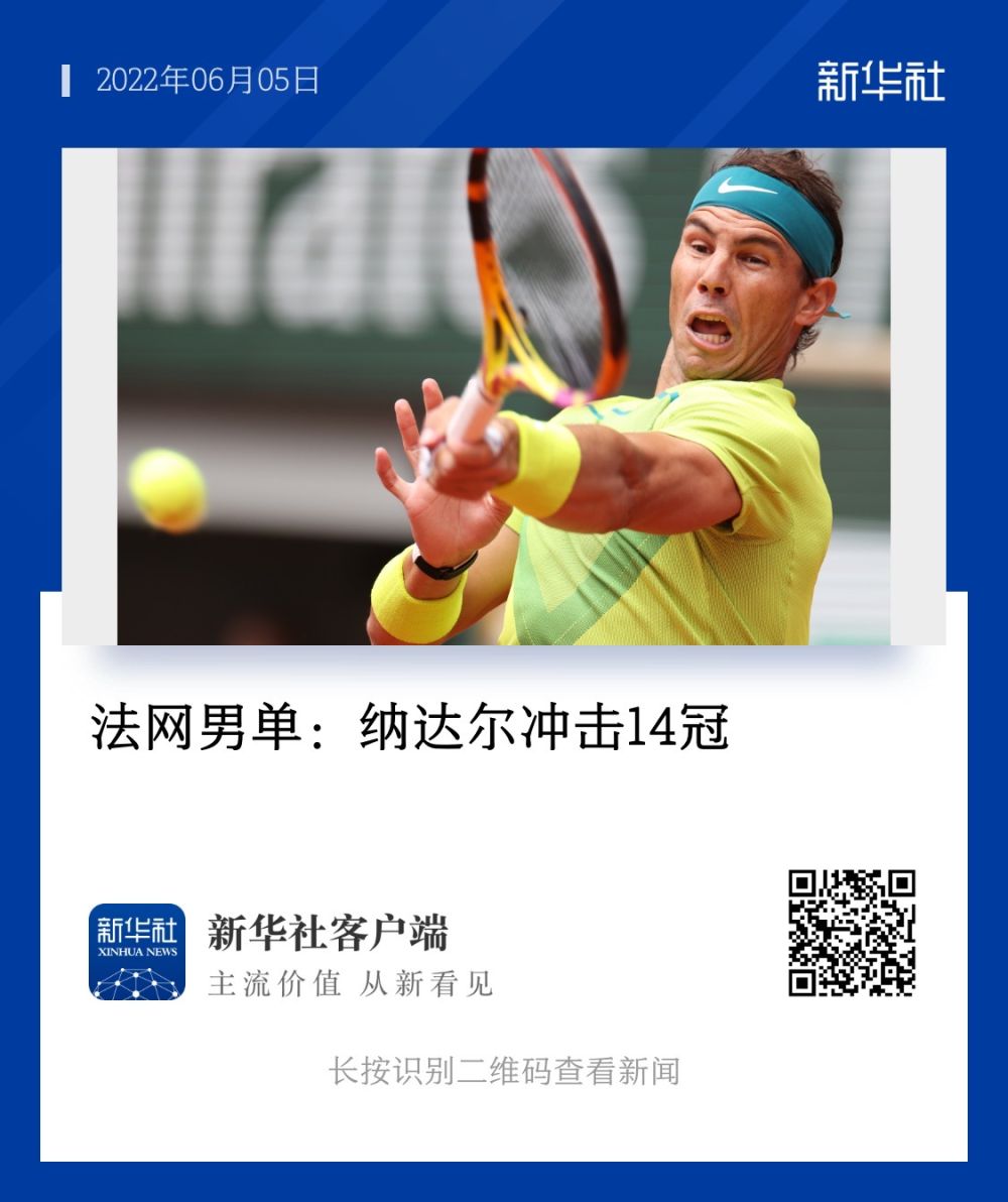 ↑2022年6月4日,西班牙選手納達爾在巴黎進(jìn)行的2022法國網(wǎng)球公開(kāi)賽男子單打決賽中戰勝挪威選手魯德,獲得冠軍。