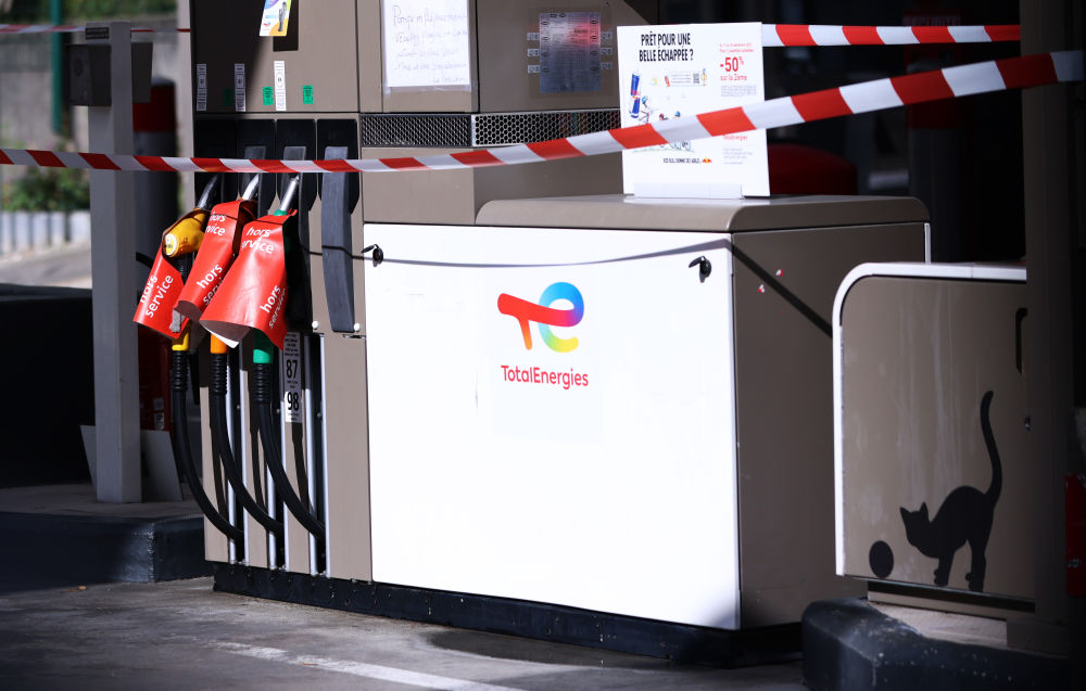 ↑2022年10月6日在法國巴黎拍攝的一處關(guān)閉的道達爾加油站。10月初,法國道達爾集團旗下的許多加油站因斷供而暫時(shí)關(guān)閉。