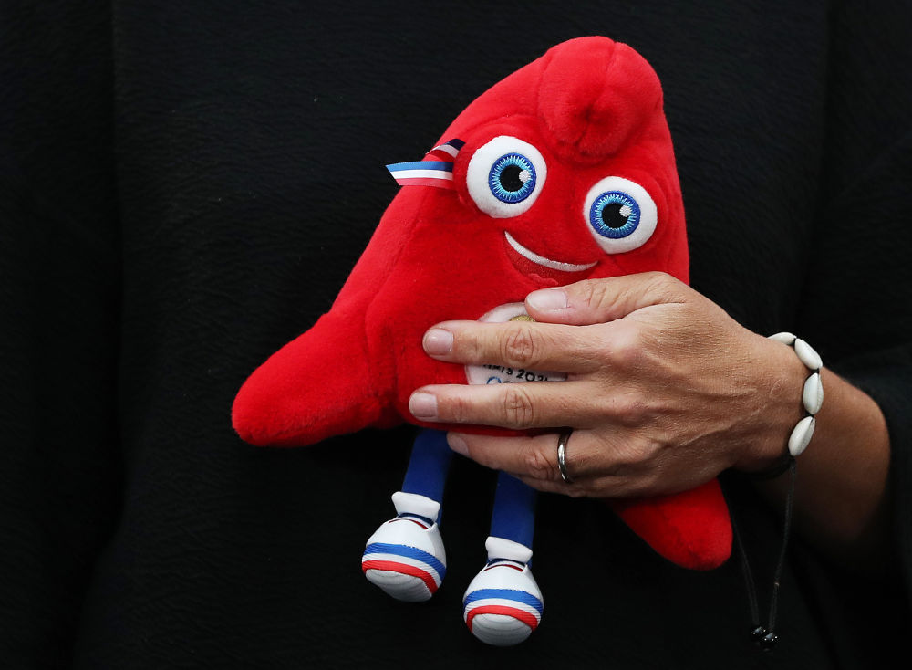 ↑2022年11月14日,一位嘉賓在發(fā)布會(huì )現場(chǎng)手持2024年巴黎奧運會(huì )吉祥物。當日,巴黎奧組委公布2024年奧運會(huì )和殘奧會(huì )的吉祥物“弗里熱(The Phryges)”,巴黎奧運會(huì )和殘奧會(huì )將使用同一吉祥物形象,但在細節設計上有稍許差別。