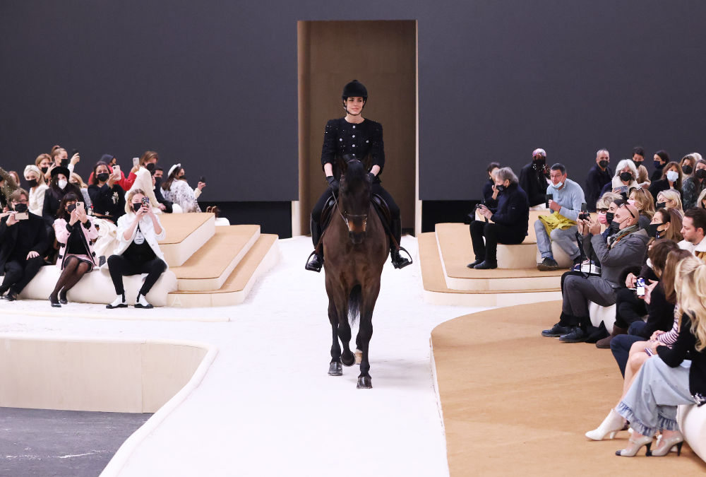 ↑2022年1月25日,在法國巴黎高級定制時(shí)裝周上,摩納哥的夏洛特公主為法國品牌香奈兒2022春夏新品發(fā)布會(huì )開(kāi)場(chǎng)。