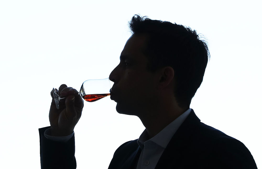 ↑2022年3月22日,在法國干邑,一名男子品嘗軒尼詩(shī)干邑白蘭地。