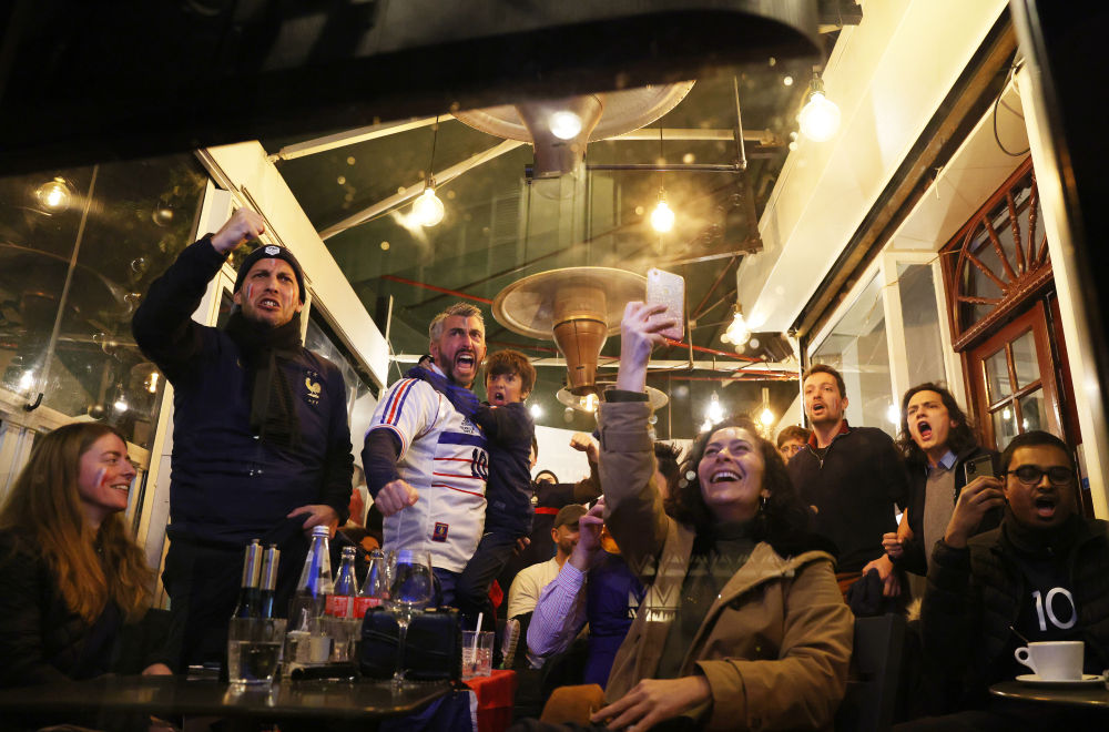 ↑2022年12月18日,球迷在法國巴黎一家酒吧為法國隊加油。