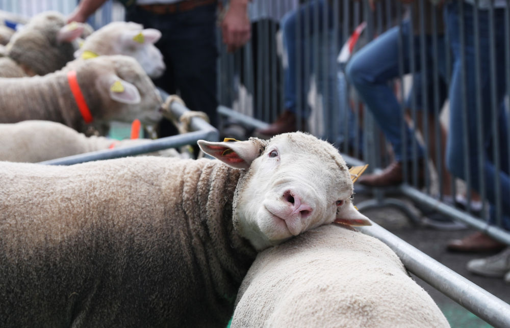 ↑2022年9月13日在法國雷恩畜牧業(yè)展覽會(huì )上拍攝的展出的綿羊。