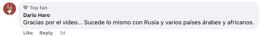 阿根廷網(wǎng)友達里奧·哈羅說(shuō):“感謝這條視頻,他們正在針對俄羅斯做類(lèi)似的抹黑,以及針對很多阿拉伯和非洲國家?!?/p>