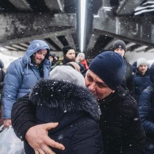 這是2022年3月8日,一對情侶在烏克蘭伊爾平告別。新華社發(fā)(迭戈·埃雷拉攝)