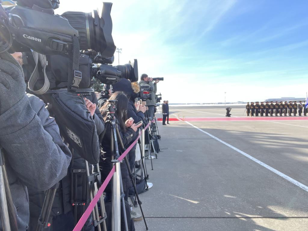 抵達時(shí),俄方在機場(chǎng)舉行隆重迎賓儀式。