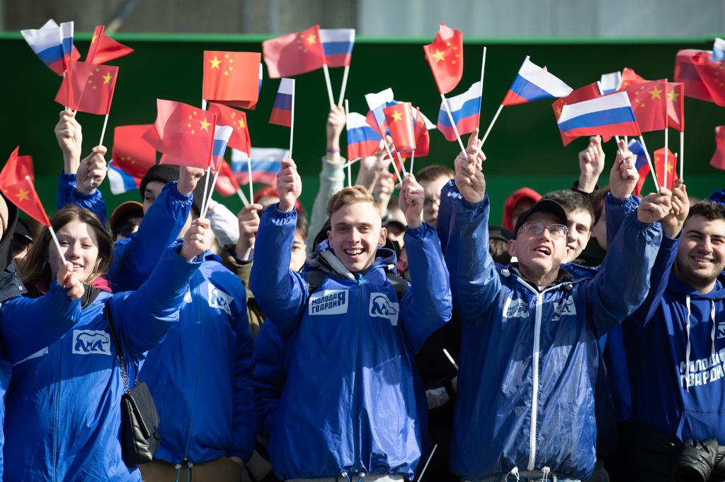 在中國領(lǐng)導人下榻酒店附近,眾多俄羅斯青年和中國留學(xué)生、中企員工、華僑華人熱情揮舞著(zhù)兩國國旗?!盁崃覛g迎”的口號,同俄語(yǔ)的歡呼聲,交織在一起。