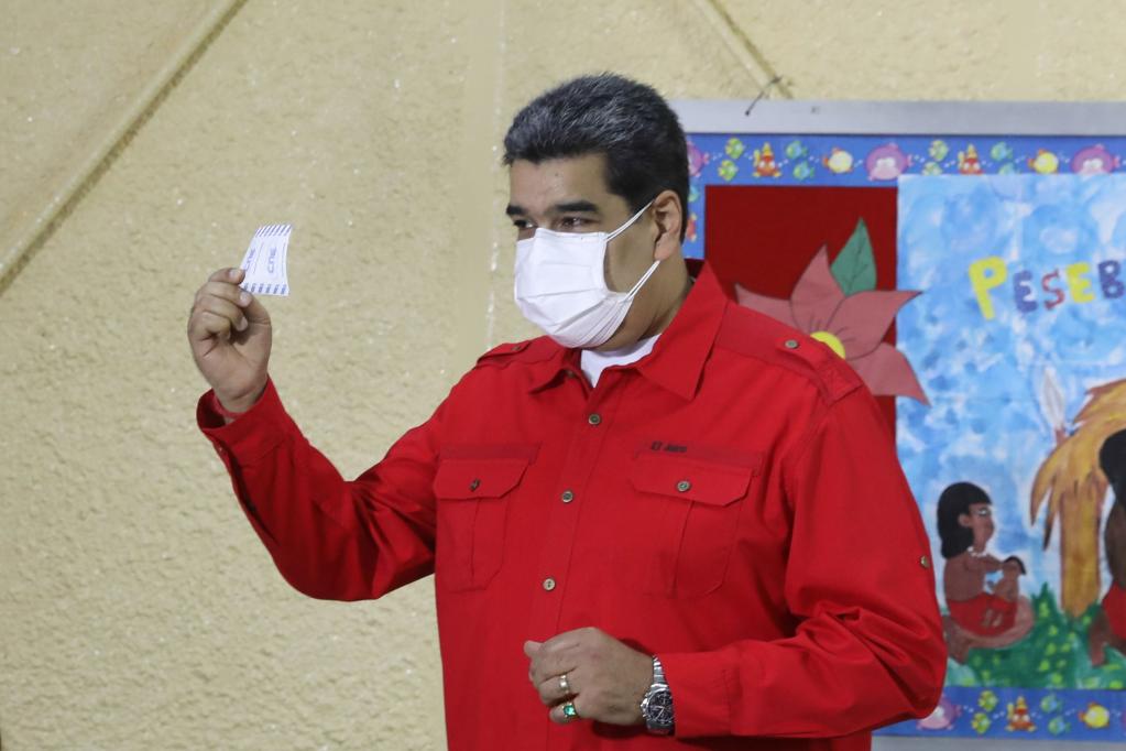 2021年11月21日,委內瑞拉總統馬杜羅在加拉加斯的一處投票站投票。新華社發(fā)