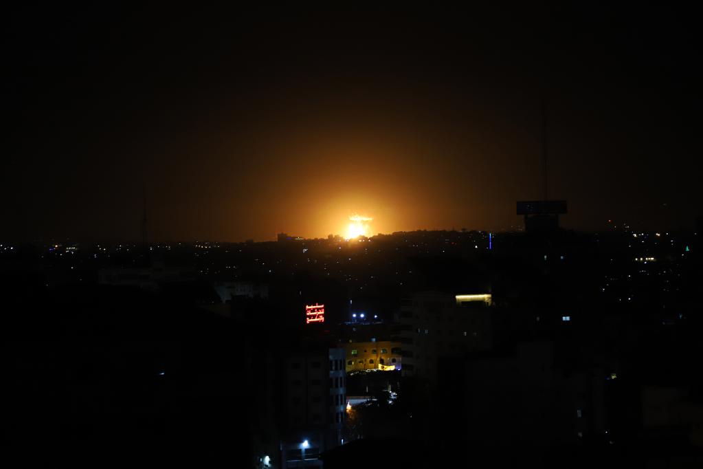 這是4月7日凌晨在加沙地帶拍攝的以軍空襲產(chǎn)生的火光。新華社發(fā)(里澤克·阿卜杜勒賈瓦德攝)