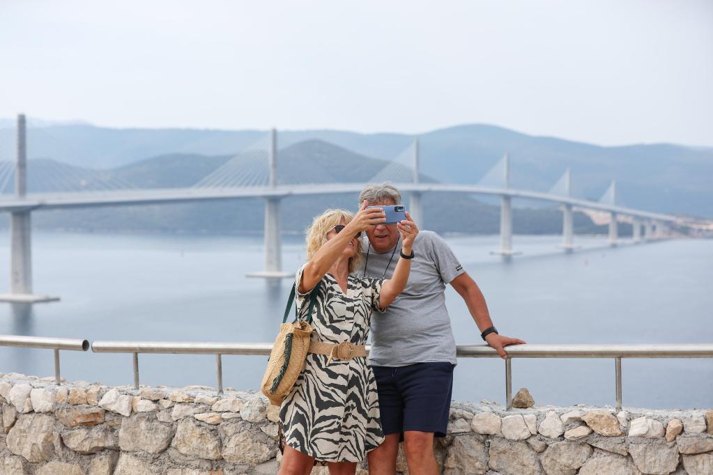 2022年7月27日,民眾在克羅地亞科馬爾納與新通車(chē)的佩列沙茨大橋合影。新華社發(fā)(Pixsell圖片社,伊戈爾·克拉利攝)