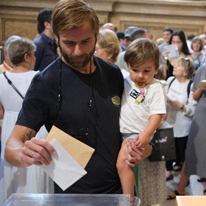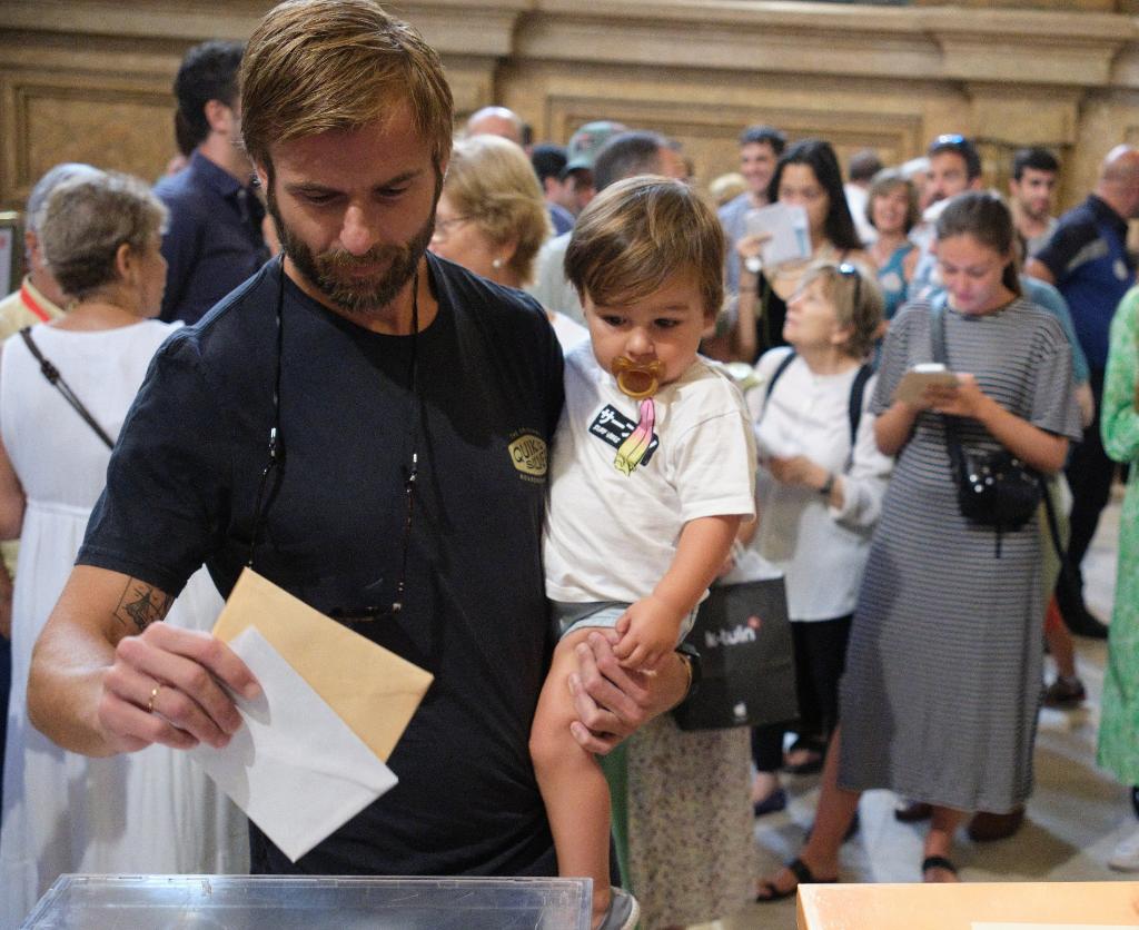 7月23日,一名男子在馬德里一處投票點(diǎn)內投票。新華社記者 孟鼎博 攝