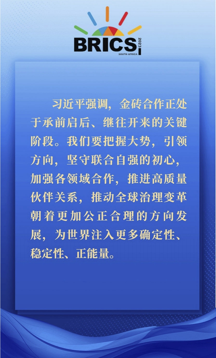 當地時(shí)間8月23日上午,金磚國家領(lǐng)導人第十五次會(huì )晤在約翰內斯堡杉藤會(huì )議中心舉行。南非總統拉馬福薩主持會(huì )晤。中國國家主席習近平、巴西總統盧拉、印度總理莫迪和俄羅斯總統普京(線(xiàn)上)出席。
